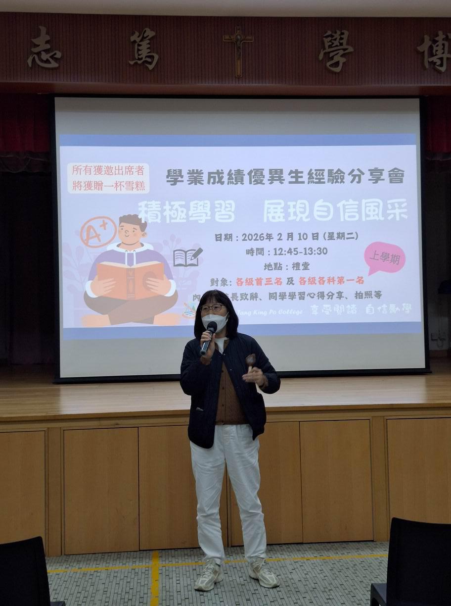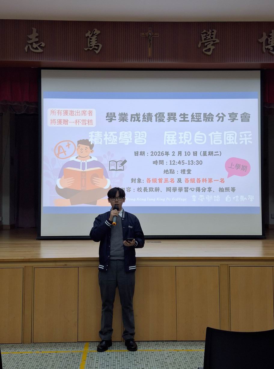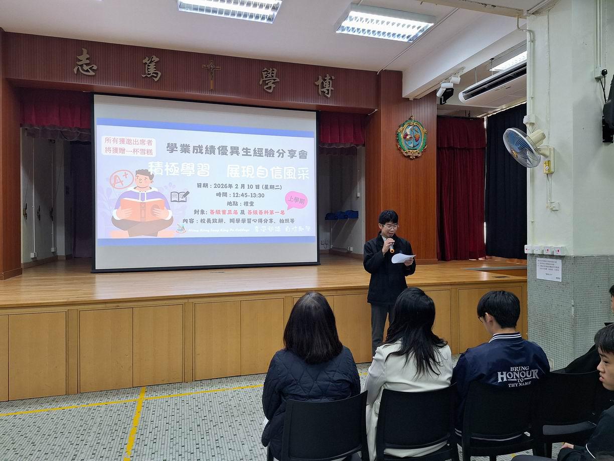 享受閱讀 自信勵學組於2026年2月10日舉行了上學期學業成績優異生經驗分享會,對象為中一至中五級上學期成績各級首三名及各級各科的第一名,每位獲邀出席的同學皆獲得Häagen-Dazs雪糕,以鼓勵及肯定他們在學習上的優異成果。